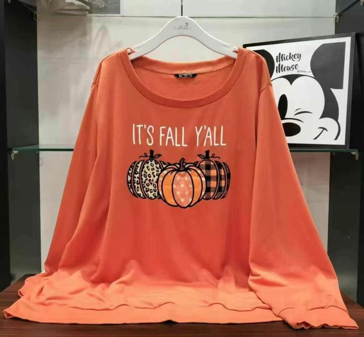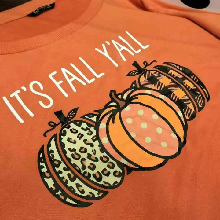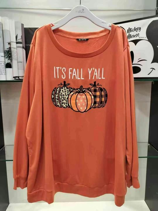 [得意]4.88元打包,新款上衣欧美跨境秋冬季女装休闲长袖圆领南瓜印花套头运动衫,独立包装,45-60码,60件左右