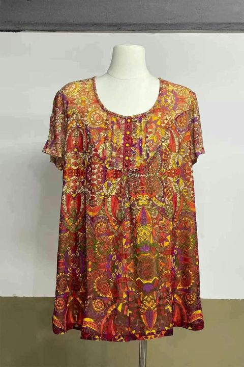 高品质台湾纱中老年女装妈妈装圆领短袖弹力上衣,双层...