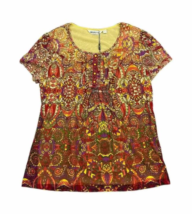 高品质台湾纱中老年女装妈妈装圆领短袖弹力上衣,双层...