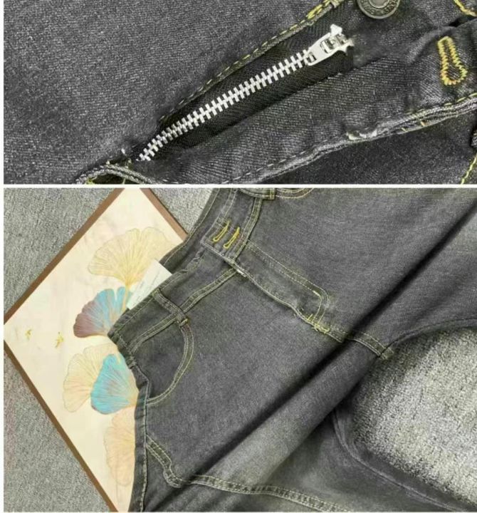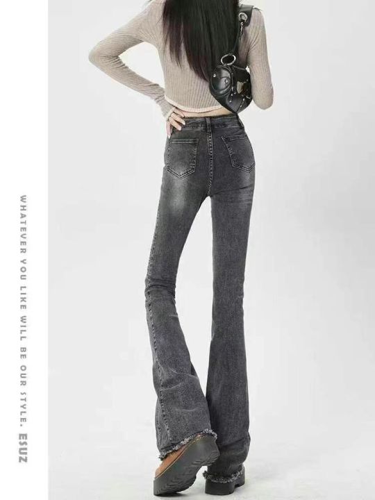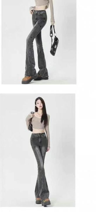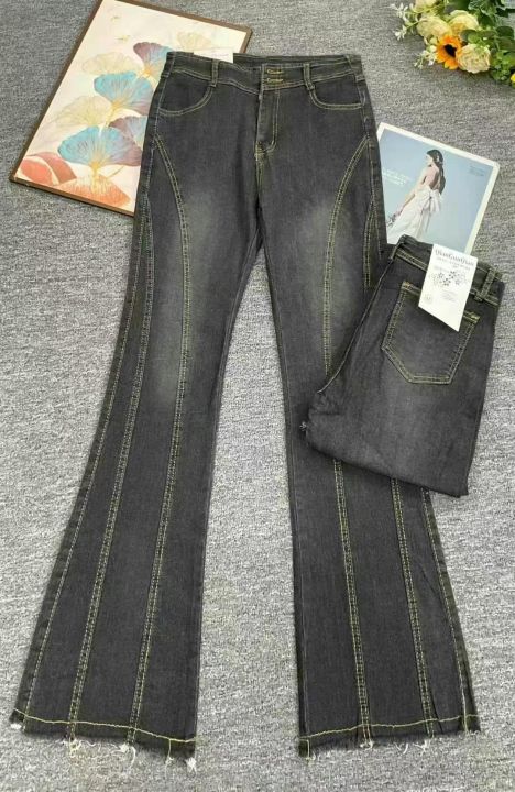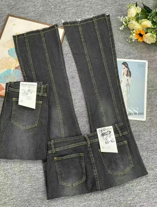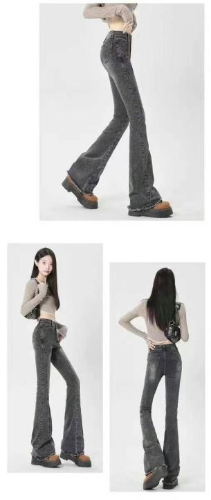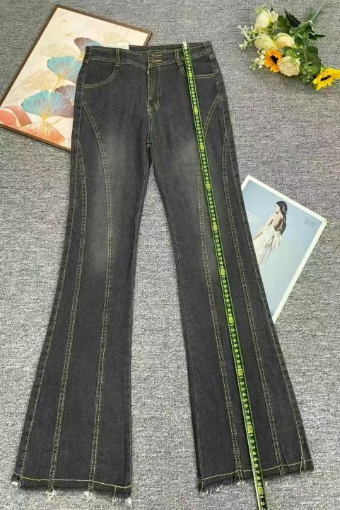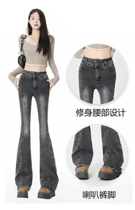春季新款高弹力洗水棉复古毛边微喇叭牛仔裤,独立包装...