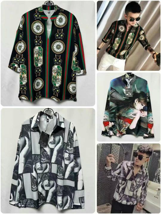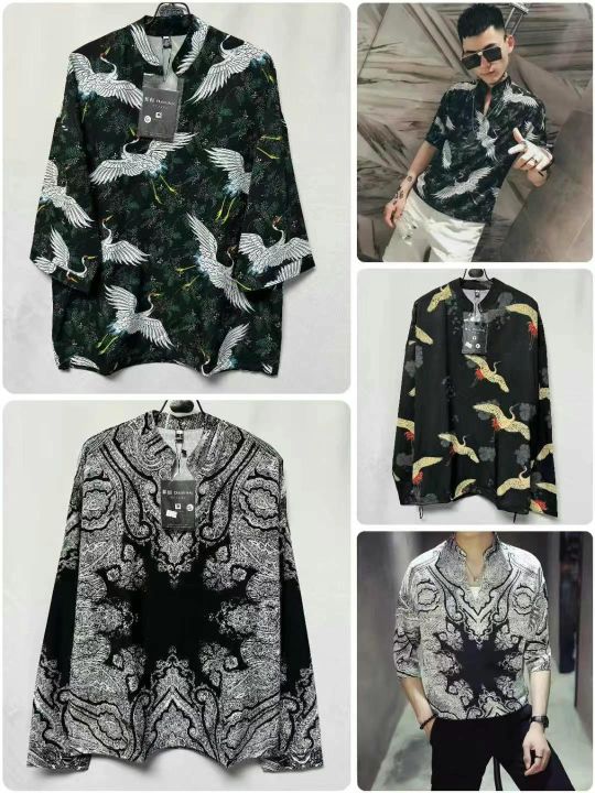 ⭐⭐1150件左右高档印花潮流冰丝滑料痞帅男装花衬衣系...