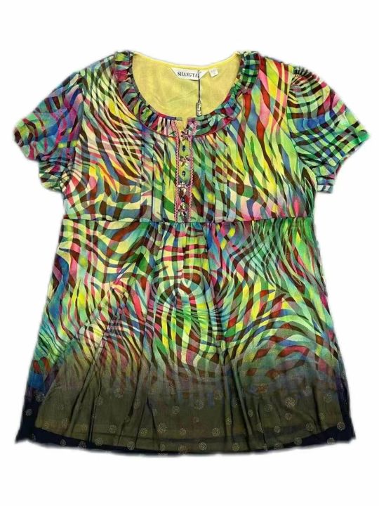 高品质台湾纱淑女妈妈装圆领短袖弹力上衣,双层统一锦...