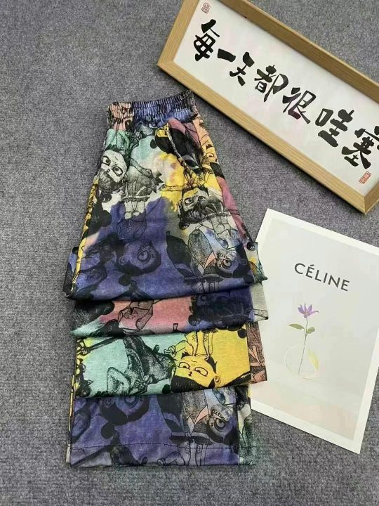 扎染哪吒图印阔腿裤1810件7.9,面料舒适高弹力,松紧...