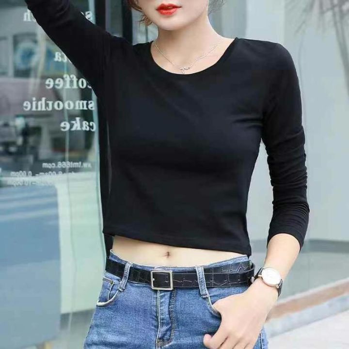 1800件2025年新款内搭修身上衣圆领打底衫女长袖t恤女士春秋装S一5XL. 4.8清 分货加一