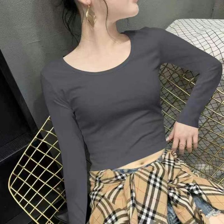 1800件2025年新款内搭修身上衣圆领打底衫女长袖t恤女...