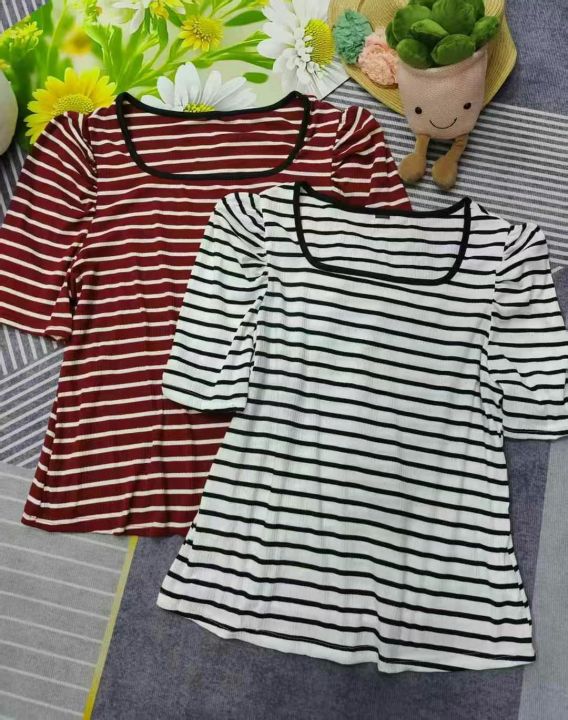 4500件韩版正肩方领简约短袖上衣女夏修身通勤漏肚脐短款收腰褶皱T恤 XS一4XL. 十件一包装 4.8清 分货加一