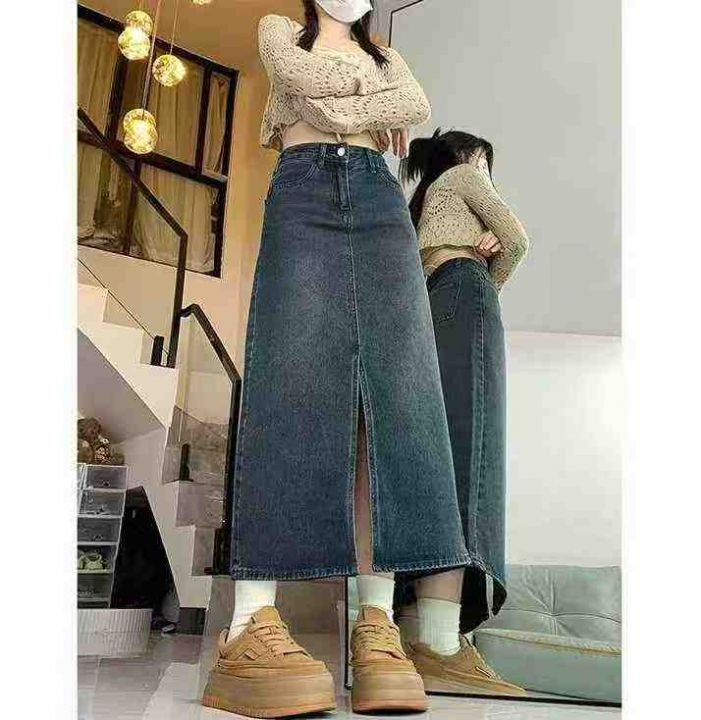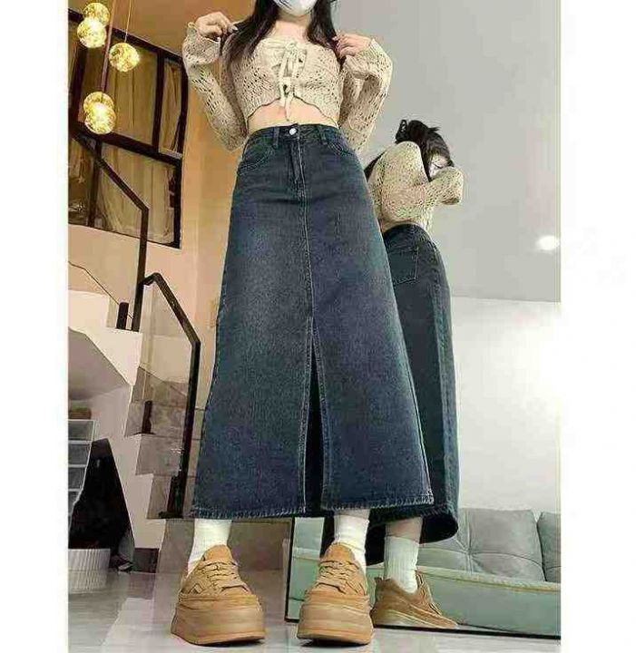 早秋季新品洗水棉复古蓝高腰开叉牛仔半身长裙,独立包装带腰卡,码数S--XL...