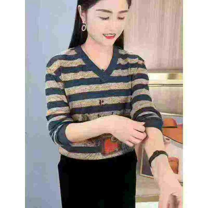 上新全清:3.9一件时尚设计感V领条纹印花宽松休闲长袖,[爱心]600件左右,...