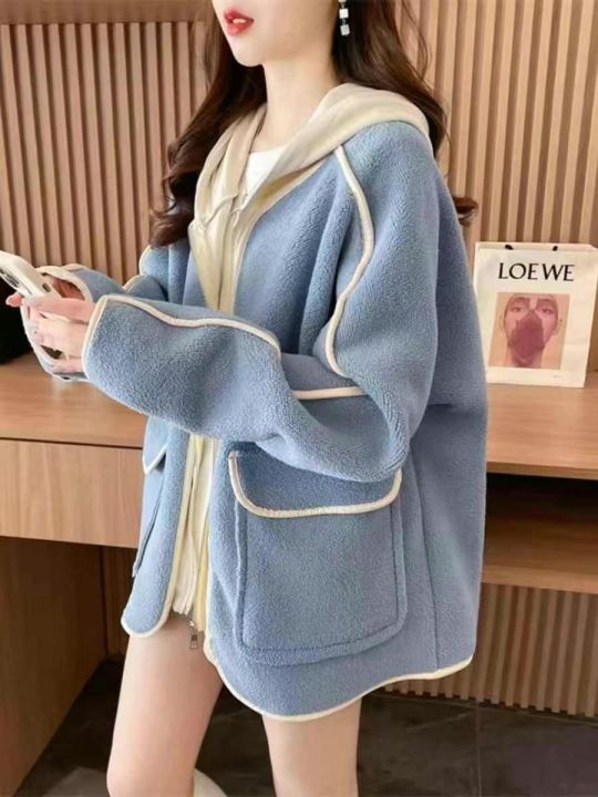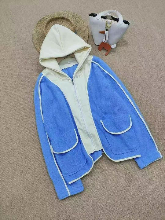 [月亮]:13.8清70件[月亮]:连帽拼接羊羔绒拉链外套[...