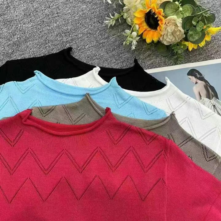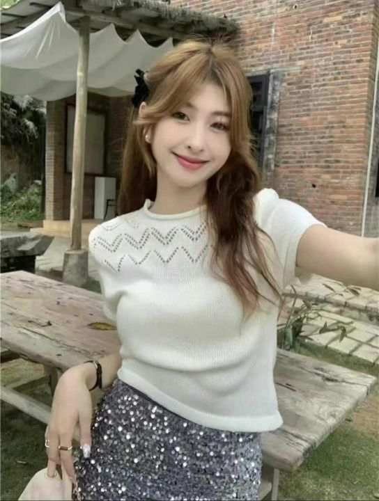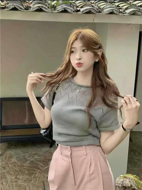 夏季新款甜美镂空洋气小众设计感百搭针织短袖,独立包装,均码面料柔软舒适,590件,全清5.9元超低价秒杀!分货加一!