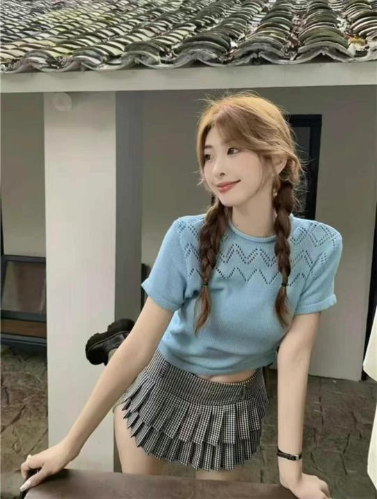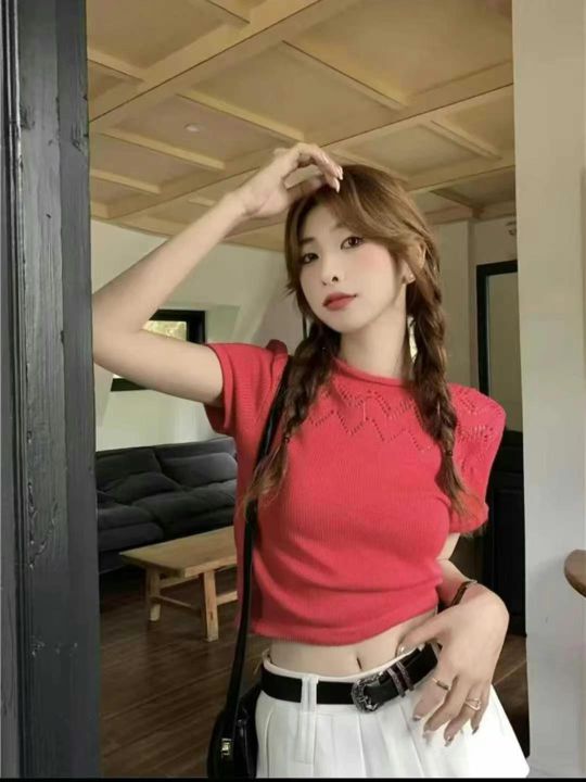 夏季新款甜美镂空洋气小众设计感百搭针织短袖,独立包...