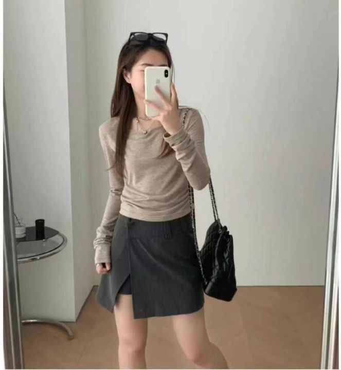 春季新款高弹力韩版设计款收腰显瘦针织长袖小衫,独立...