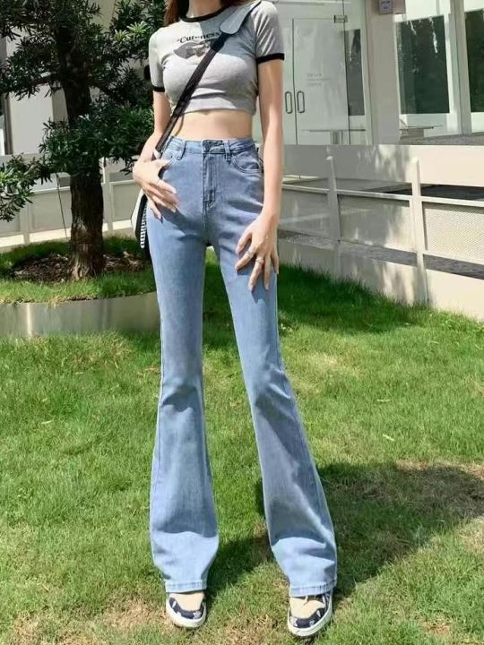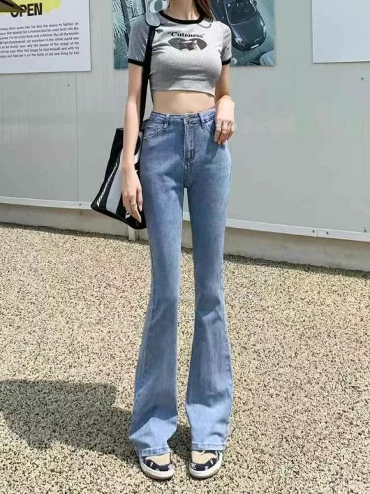 高弹力喇叭牛仔裤☕️360条全清13.8 分货+1,码数S到XXL,正品独立包装吊牌,棉弹微喇叭牛仔设计感小众高腰显瘦马蹄裤子高街ins潮