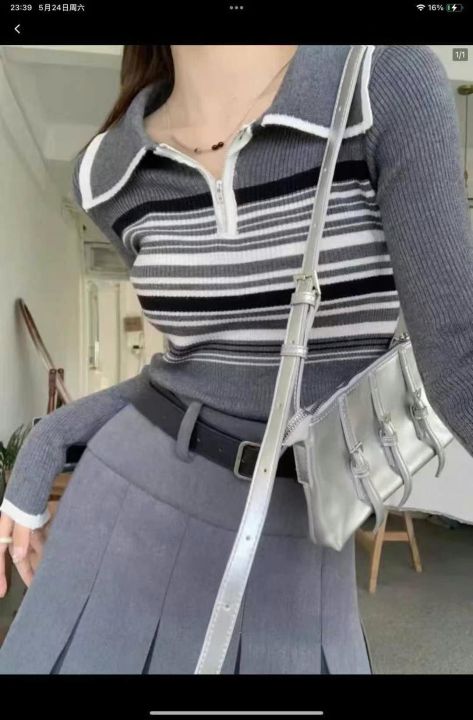 春秋新款复古polo翻领针织撞色条纹字母长袖套头毛衣,独立包装,均码面料软糯舒适弹力大,50件左右,全清6.9元超低价秒杀!