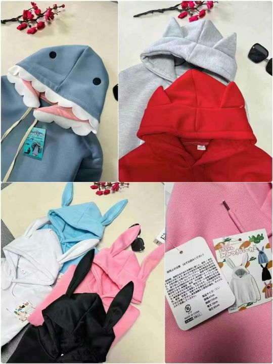反季清仓,气质日系可爱搞怪连帽宽松加绒卫衣,图片款4个颜色,数量273件,码数2-3,有独立包装。