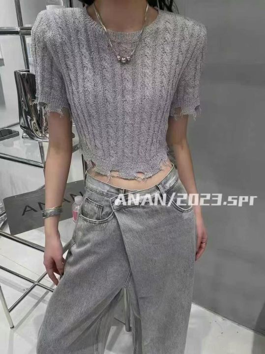 夏季新款纯欲风设计感流苏独特别致麻花短袖短款针织小...