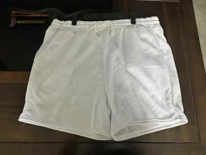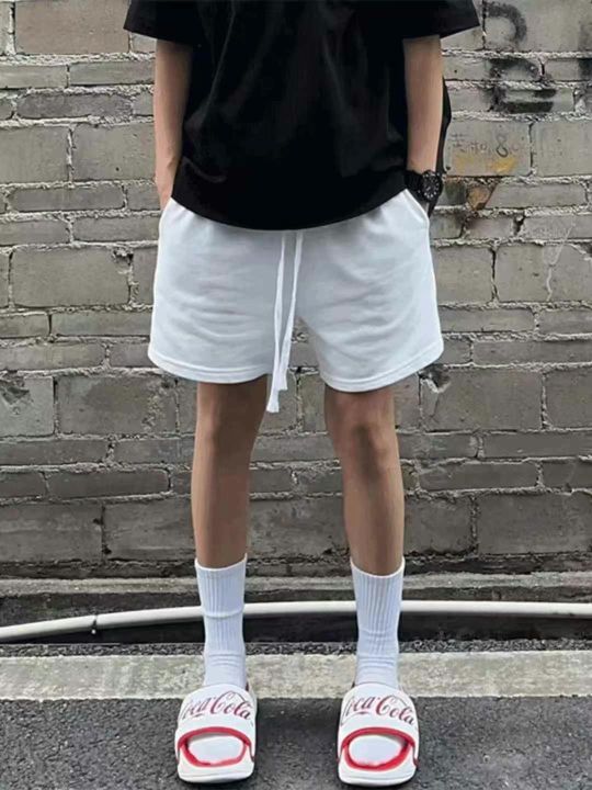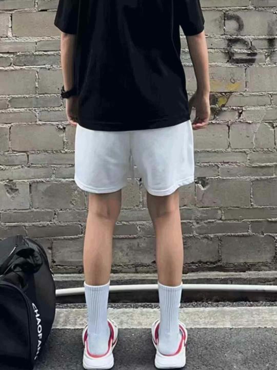 纯白色宽松抽绳运动休闲加绒短裤五分裤男