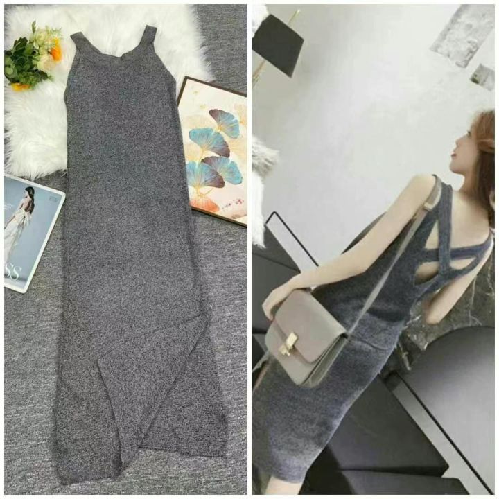 夏季新款高品质女装网红大长款冰丝针织长裙,独立包装...