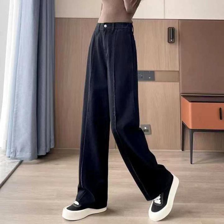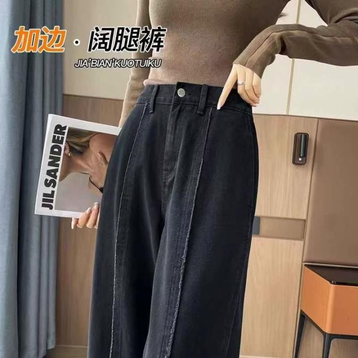 黑色阔腿牛仔裤新款裤子高腰显瘦宽松显高直筒拖地长裤...