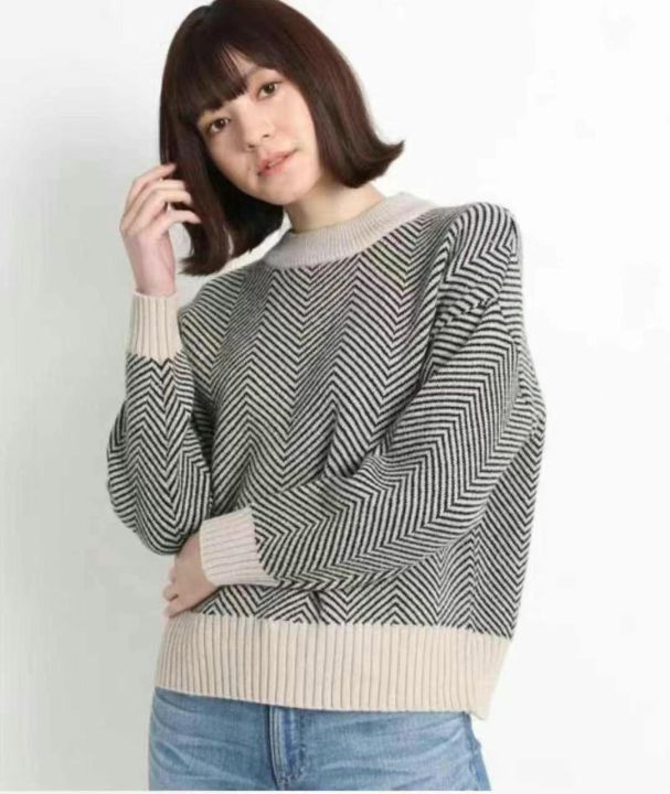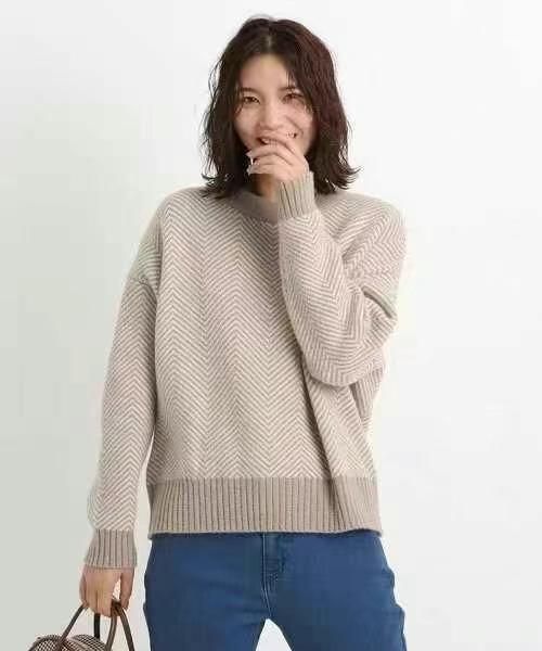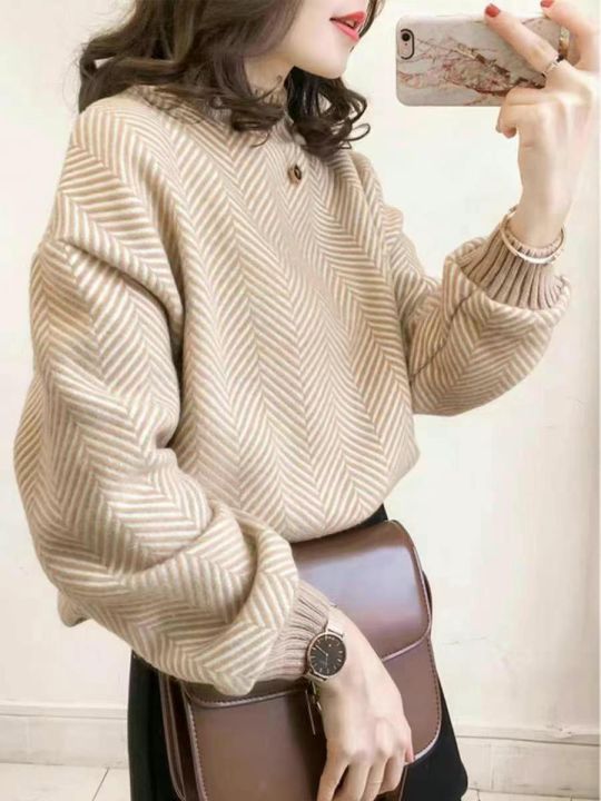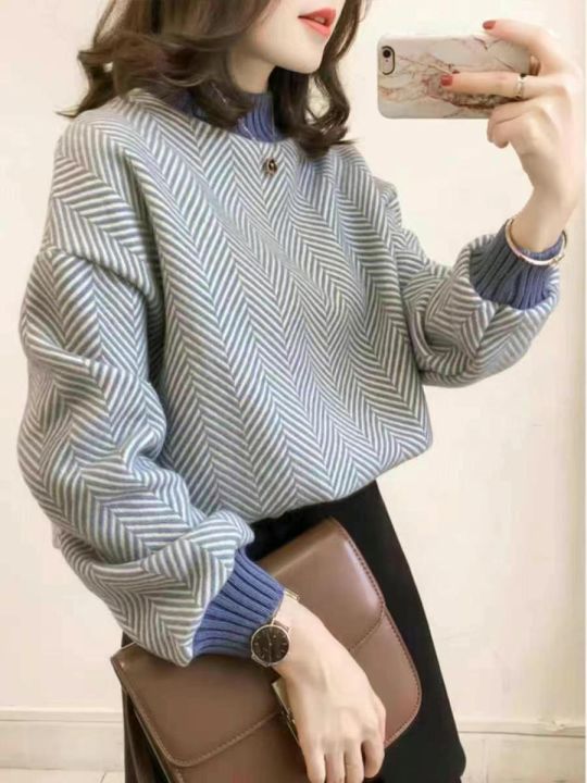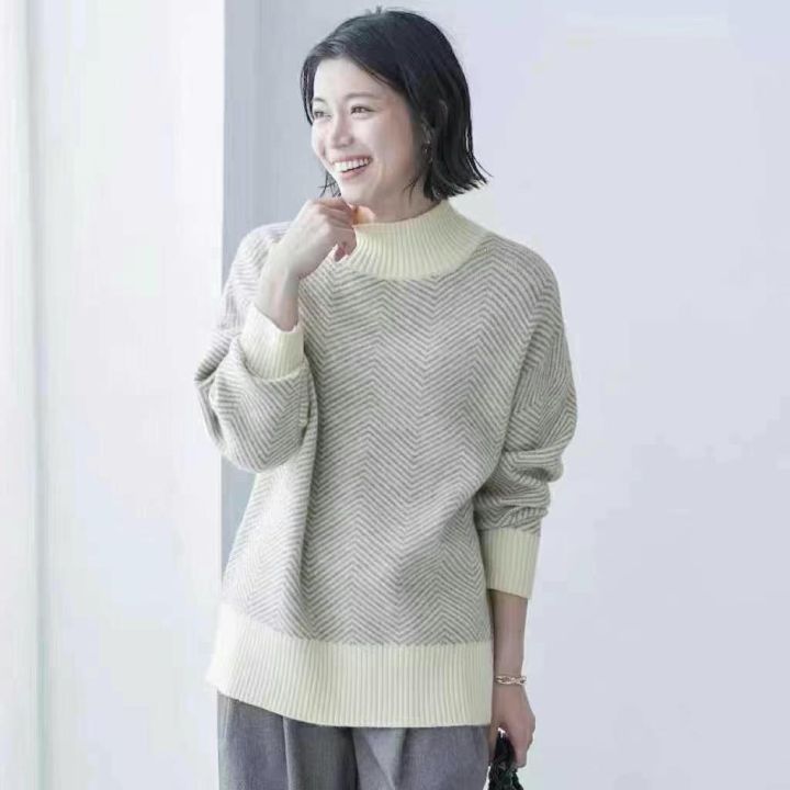 秋冬新款高品质独特别致半高领宽松撞色慵懒风圆领套头...