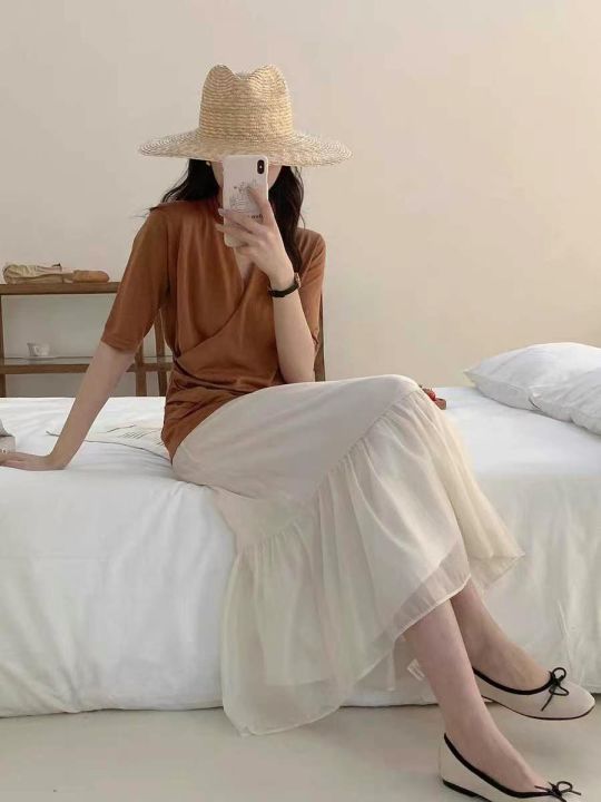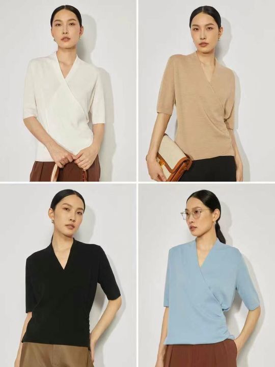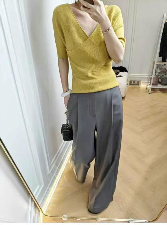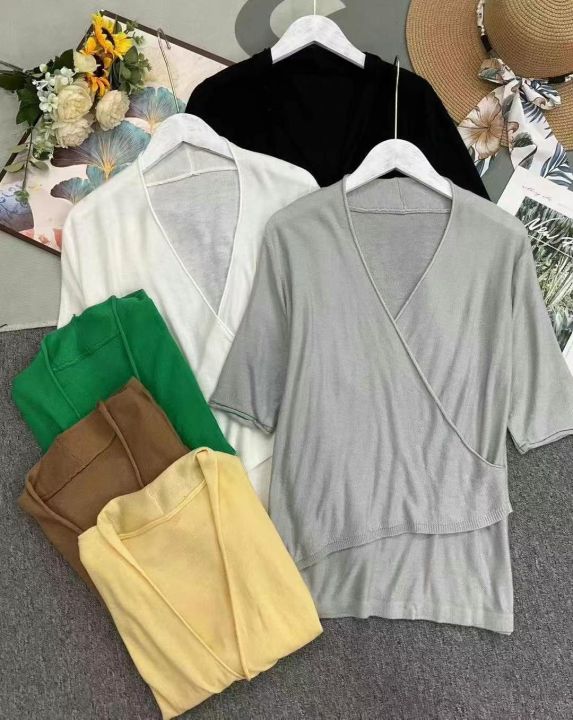 夏季新款女装韩版气质交叉V领宽松冰丝薄款针织小衫,...