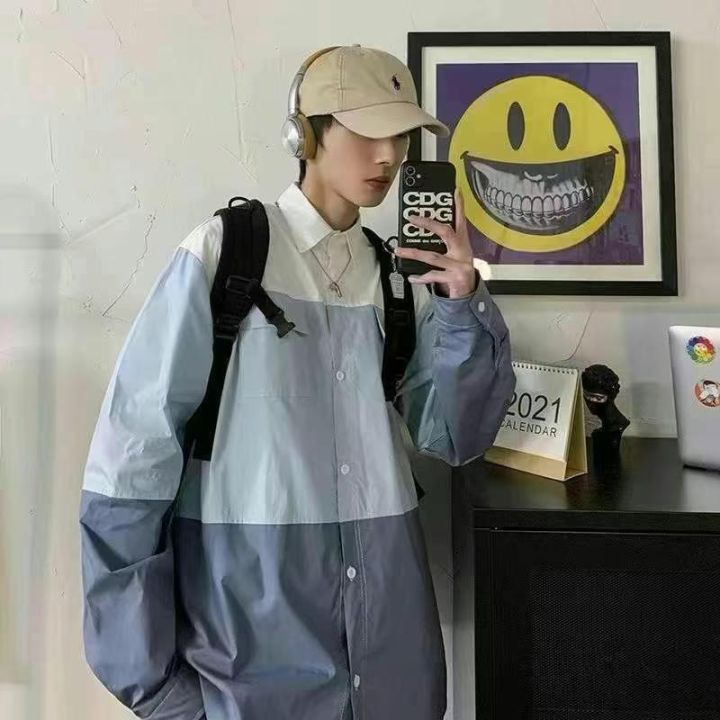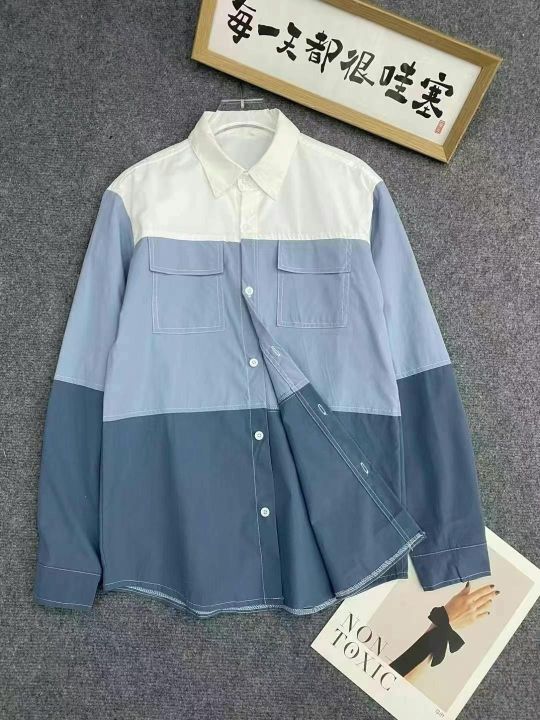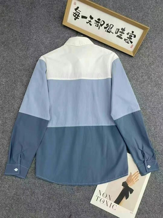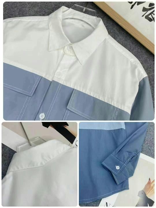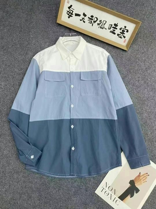 港风新款长袖衬衫126件7.5,拼接撞色,POLO领,有口袋...