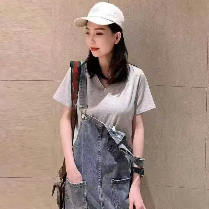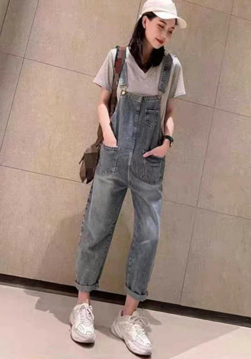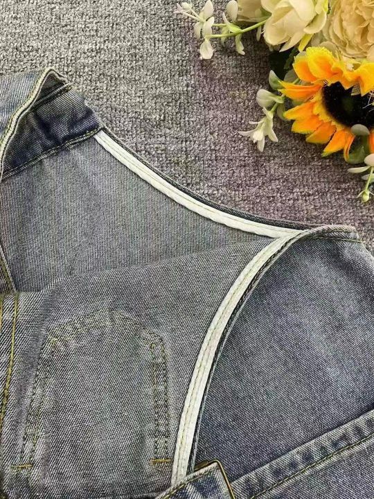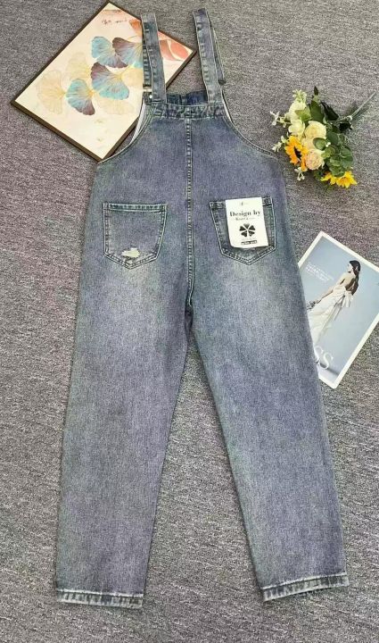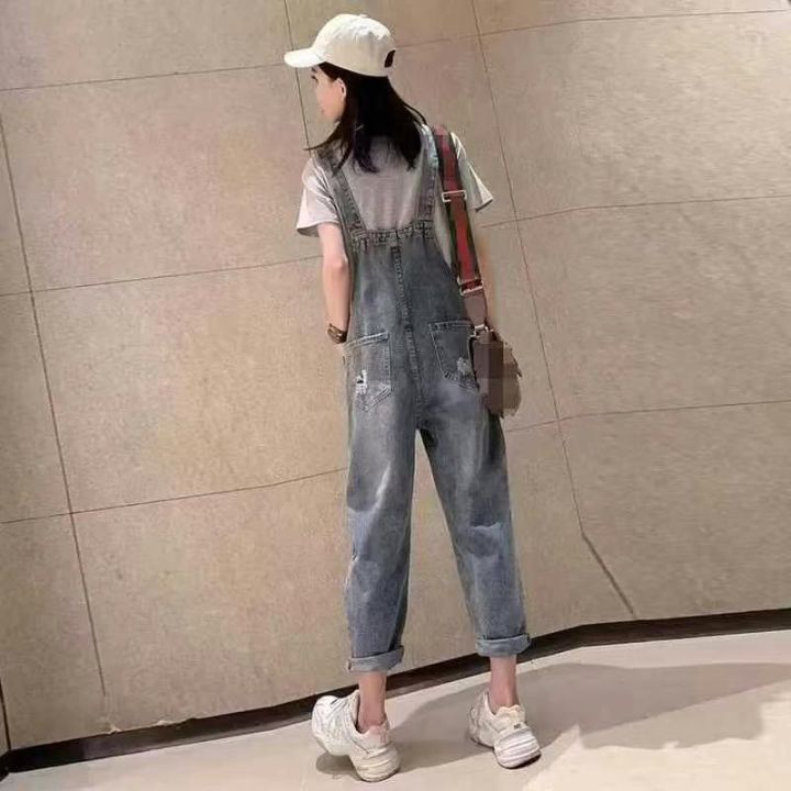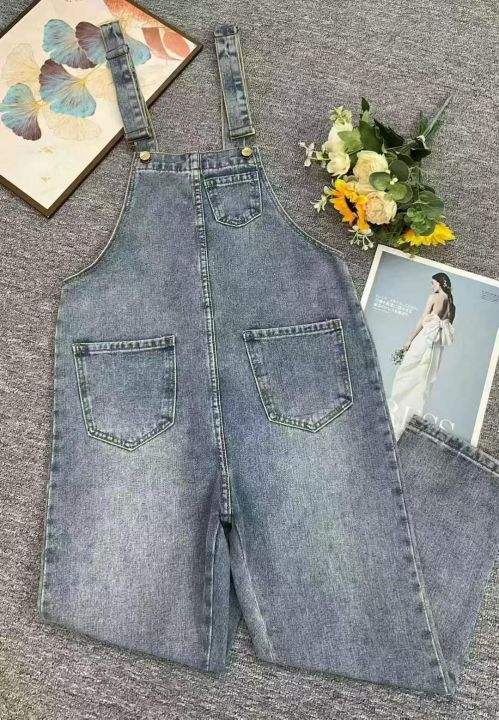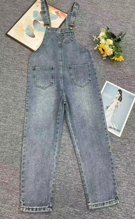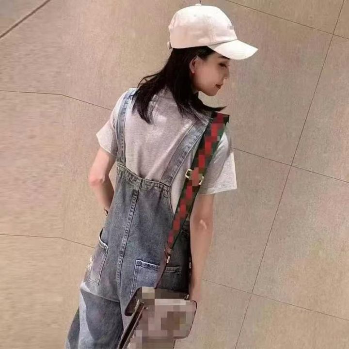春季新款高品质女装洗水棉牛仔背带长裤,独立包装带腰...