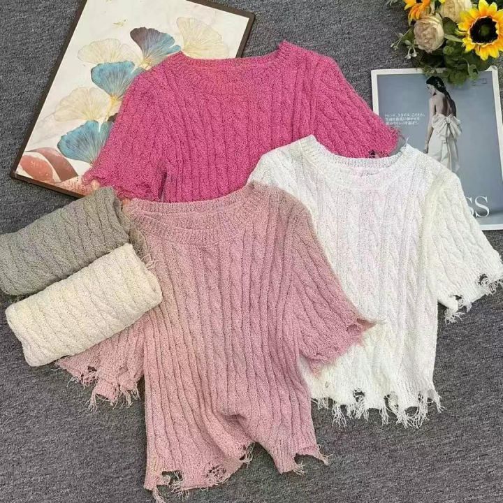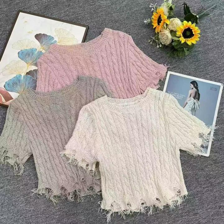 夏季新款纯欲风设计感流苏独特别致麻花短袖短款针织小衫,独立包装,短款多色,均码面料柔软舒适,816件,全清5.9元超低价秒杀!分货加一!