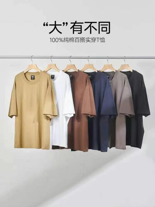 260g重磅T恤潮牌欧美纯棉纯色光版短袖基础款情侣装半...