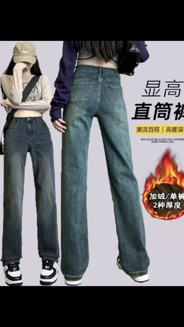 天猫下架一批高品质冬季新款加绒加厚洗水棉女装牛仔裤,独立包装带吊牌或是...