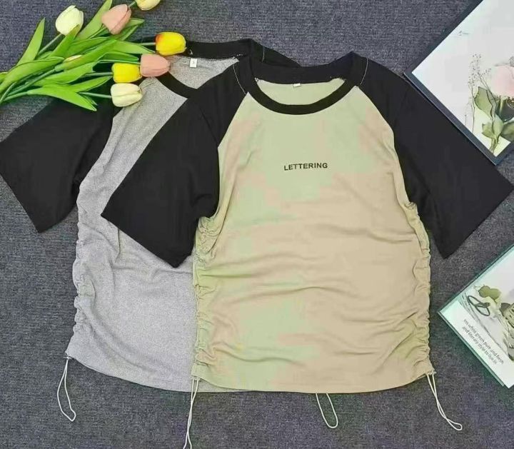 ☆靓妹女装,插肩袖侧抽绳辣妹上衣,598件,1-7码,冰丝罗纹面料,货品新净,带卡纸独立包装,全清6.8元,分货+0.5