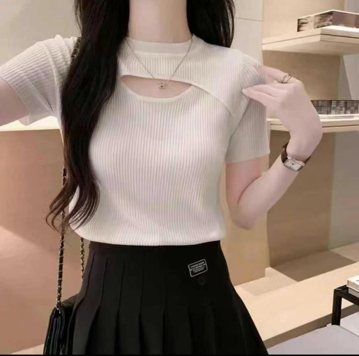 夏季新款韩版温柔风设计感时尚别致镂空弹力修身显瘦气质短袖针织小衫,独立包装,均码面料柔软舒适弹力大,400件左右,全清5.9元超低价秒杀!分货加一!