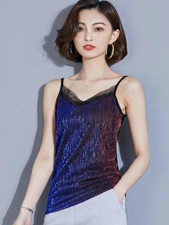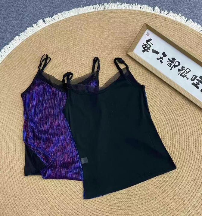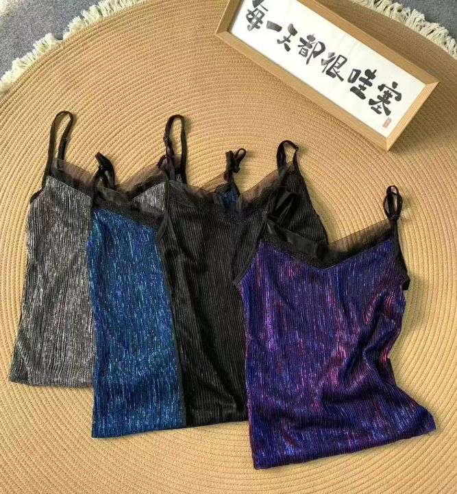 亮丝吊带3800件3.9,领口蕾丝拼接,亮丝设计感,正面...