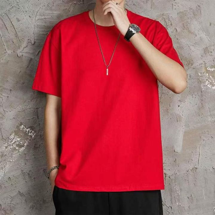 夏季男士100%纯棉短袖t恤,宽松圆领纯色体恤纯棉,光...