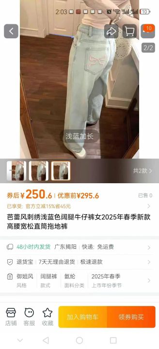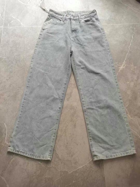 韩版ins复古牛仔裤女春夏新款高腰宽松显瘦蝴蝶结刺绣阔腿拖地裤,独立包装,S~XL码,68件左右,全清16.8