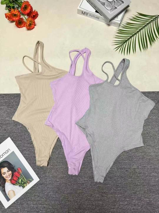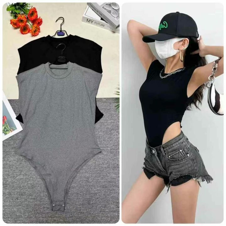 欧美风圆领修身简约辣妹潮搭纯色性感连体打底上衣,数量 500 件左右,小整杂,高弹力,全清 3.8