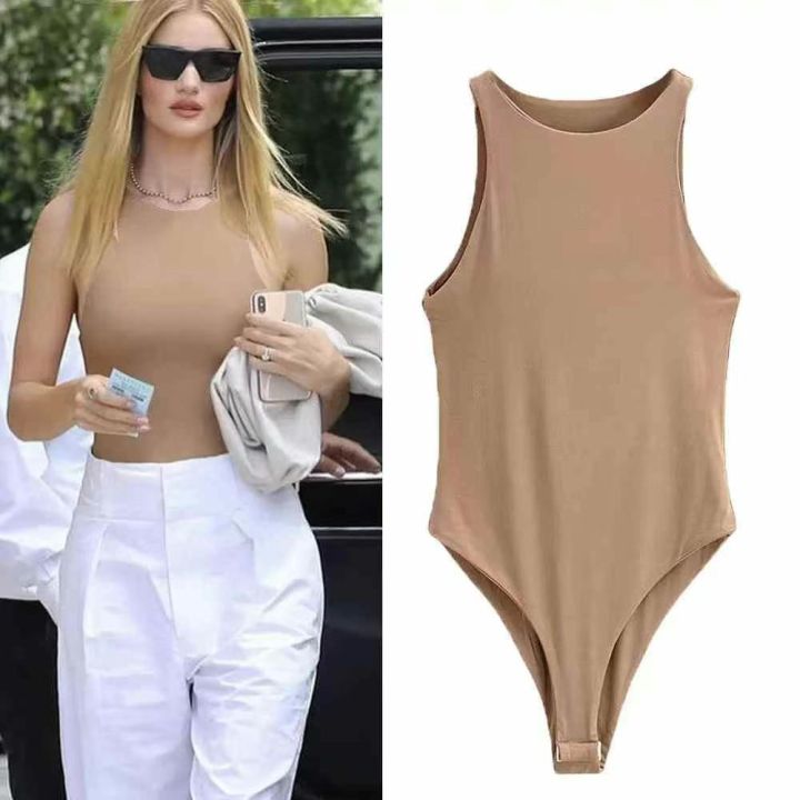欧美风圆领修身简约辣妹潮搭纯色性感连体打底上衣,数...