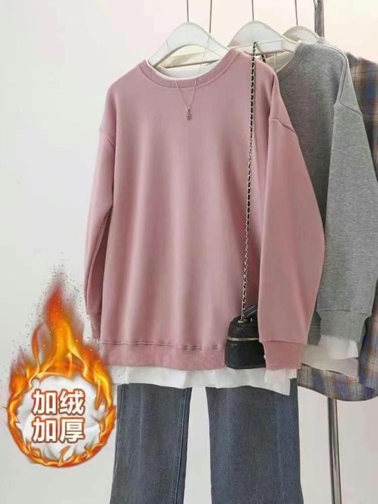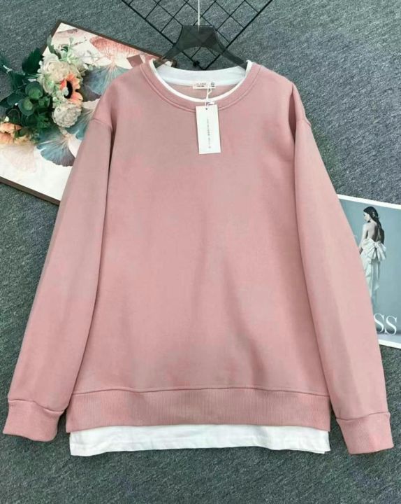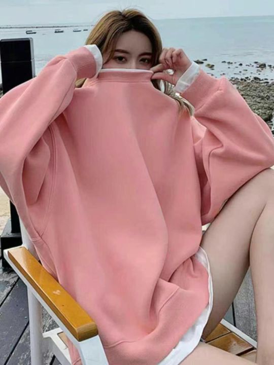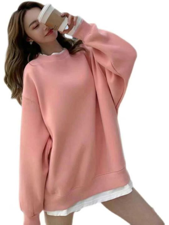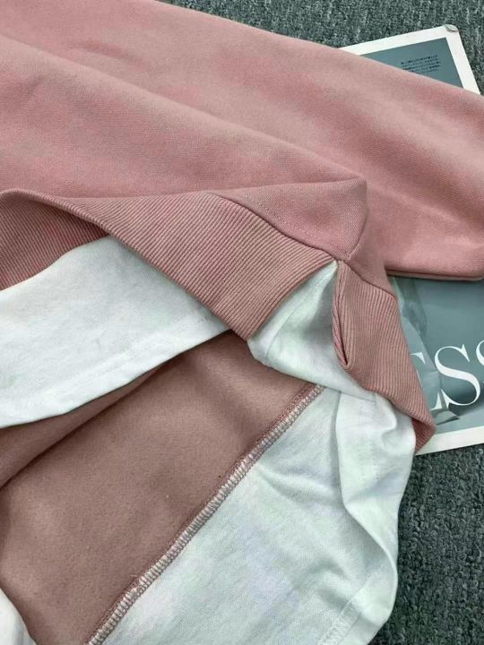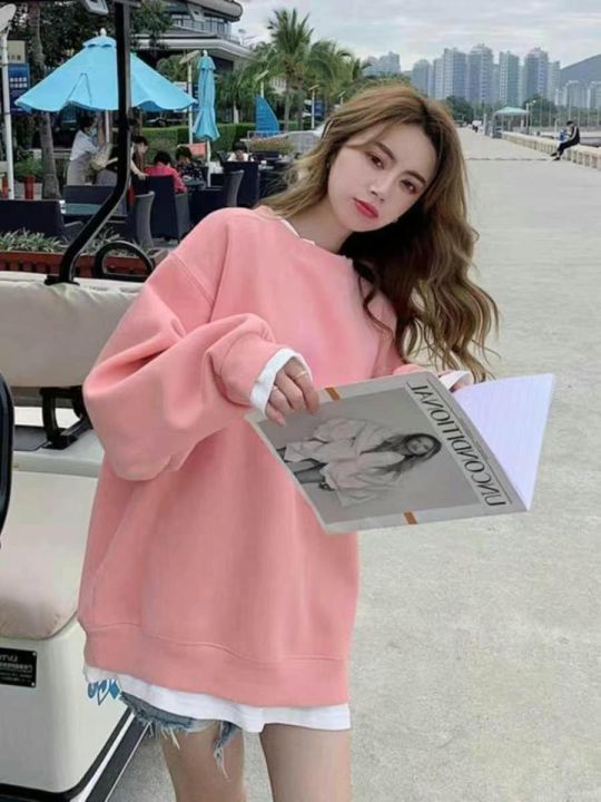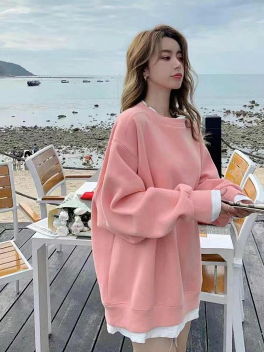 秋冬新款宽松百搭慵懒风假两件纯棉圆领卫衣,独立包装...