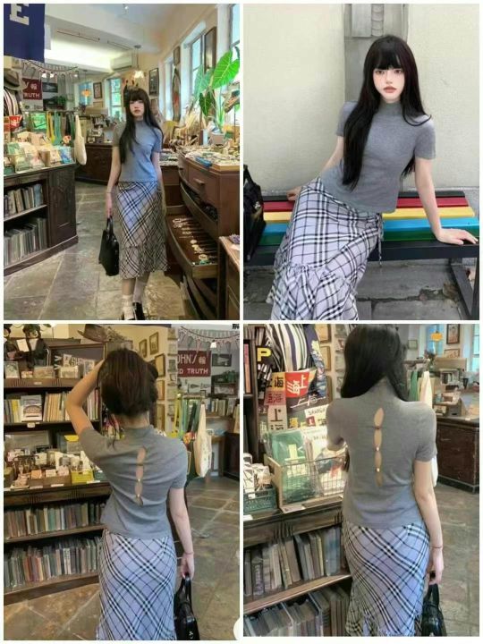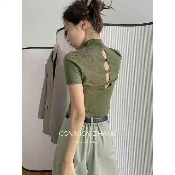 夏季新款法式独特别致后背镂空绝美弹力修身包芯纱短袖...
