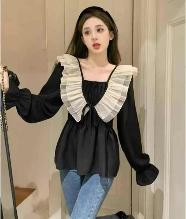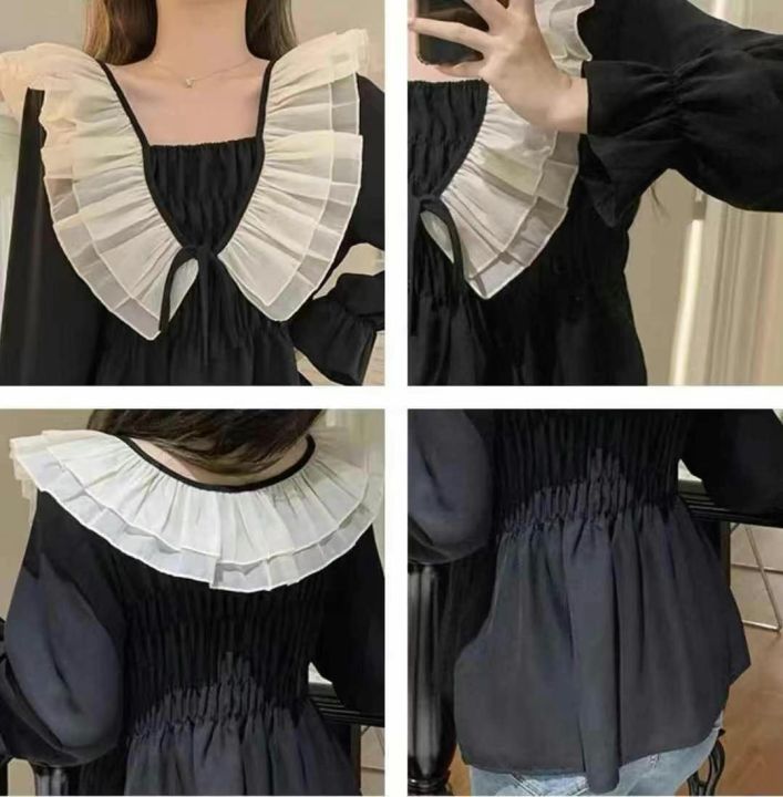 [月亮]:9.5清136件[月亮]:法式方领大码甜美气质上衣...