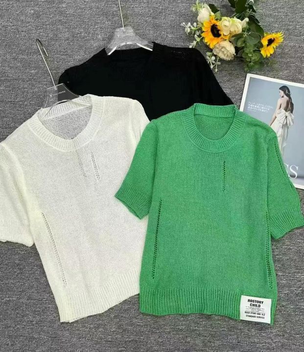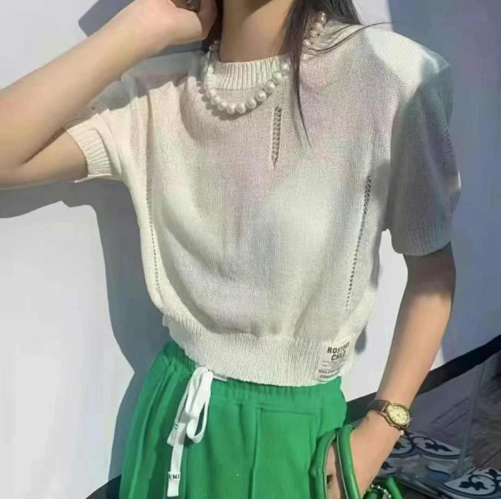 夏季新款女装薄款宽松百搭冰丝针织短袖小衫,独立包装...