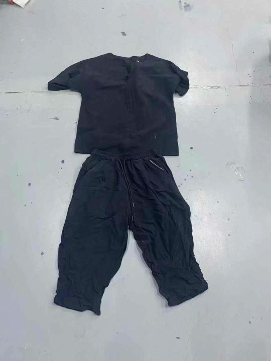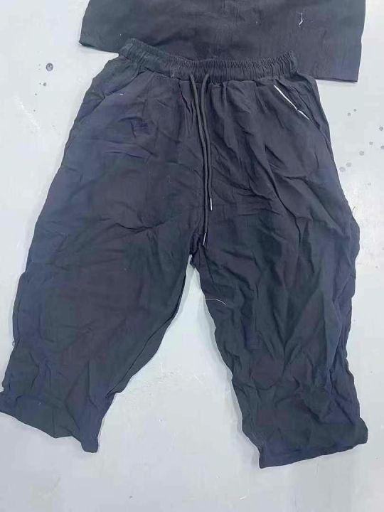 1.88元全清,夏季新款男士中国风轻薄款麻圆领短袖透气舒适亚麻宽松休闲男套装,一撕就破,M-XL,100套左右