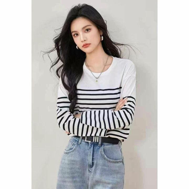 法式气质条纹长袖男女T恤秋季,独立包装,S- X L,700...