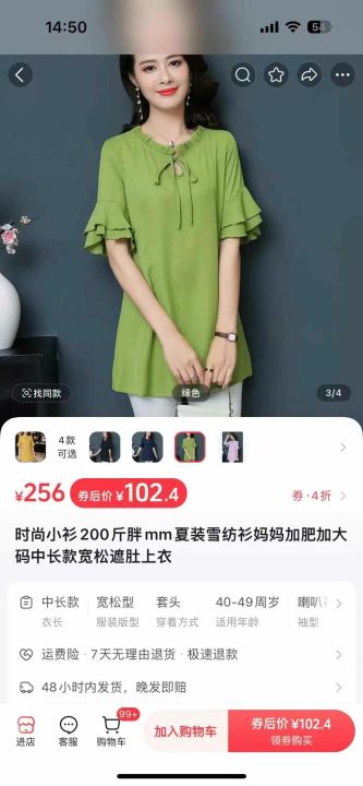 350件左右新款妈妈装加肥加大码中长款宽松遮肚雪纺衫T恤上衣!三个图片款!尺码XL-6XL,宽松大版型!独立包装!全清8.8 可以挑款清!
