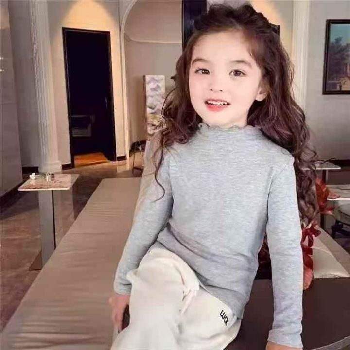 370件左右新款洋气童装花边半高领糖果色系加绒女童打底上衣!两个图片款!...