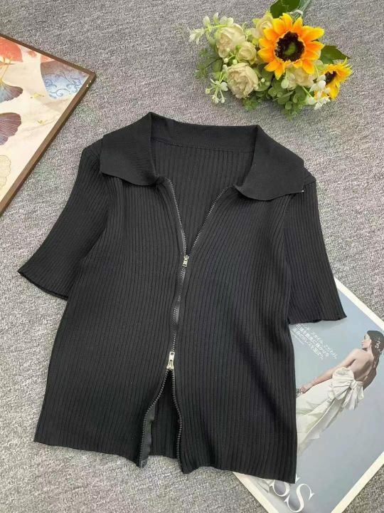 捡漏款,夏季新款Polo领双头拉链弹力修身显瘦针织短袖开衫,独立包装,均码面料柔软舒适弹力大,39件,全清6.9元超低价秒杀!