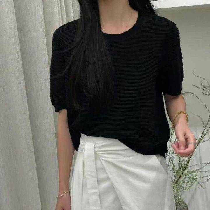 夏季新款女装宽松简约净版竹节麻冰丝针织短袖,独立包...