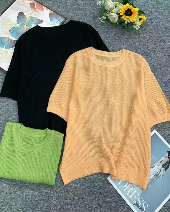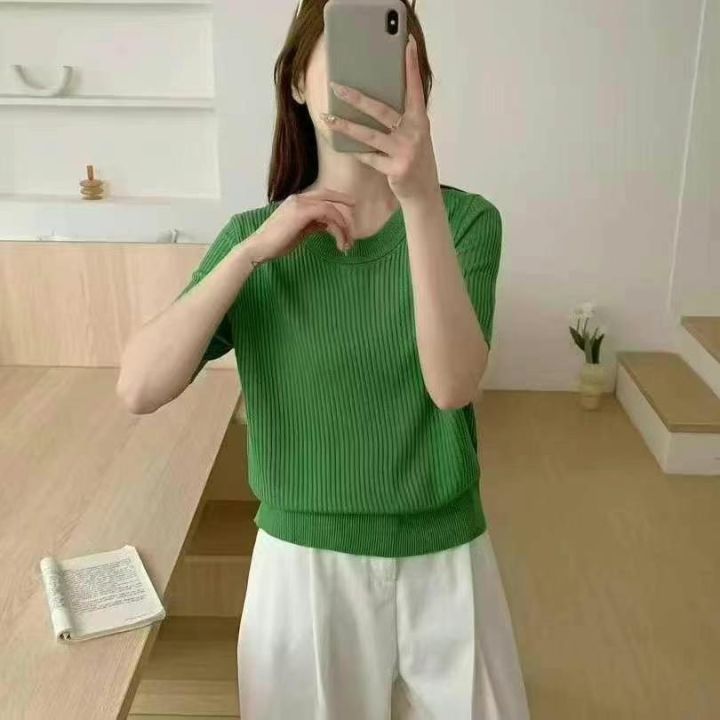 夏季新款女装宽松简约净版竹节麻冰丝针织短袖,独立包装,均码面料柔软舒适透气,52件,全清4.9元超低价秒杀!