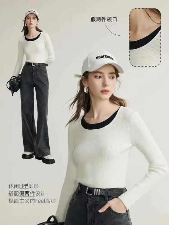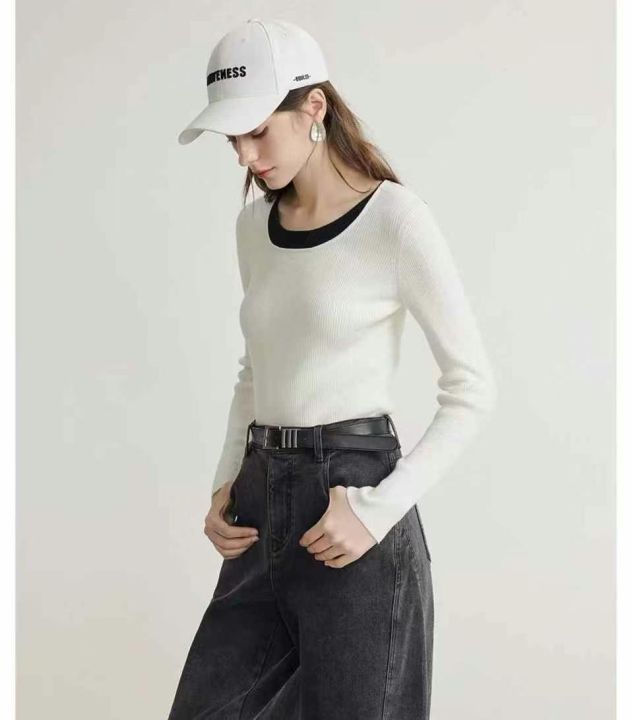拼接圆领长袖衫 打底小衫女 2025春季新款欧货针织衫 ...