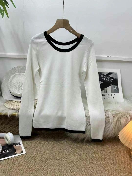 拼接圆领长袖衫 打底小衫女 2025春季新款欧货针织衫 韩系修身撞色靓妹上衣,数量458件,单款单色,均码,软糯高弹面料。超低价5.5秒杀